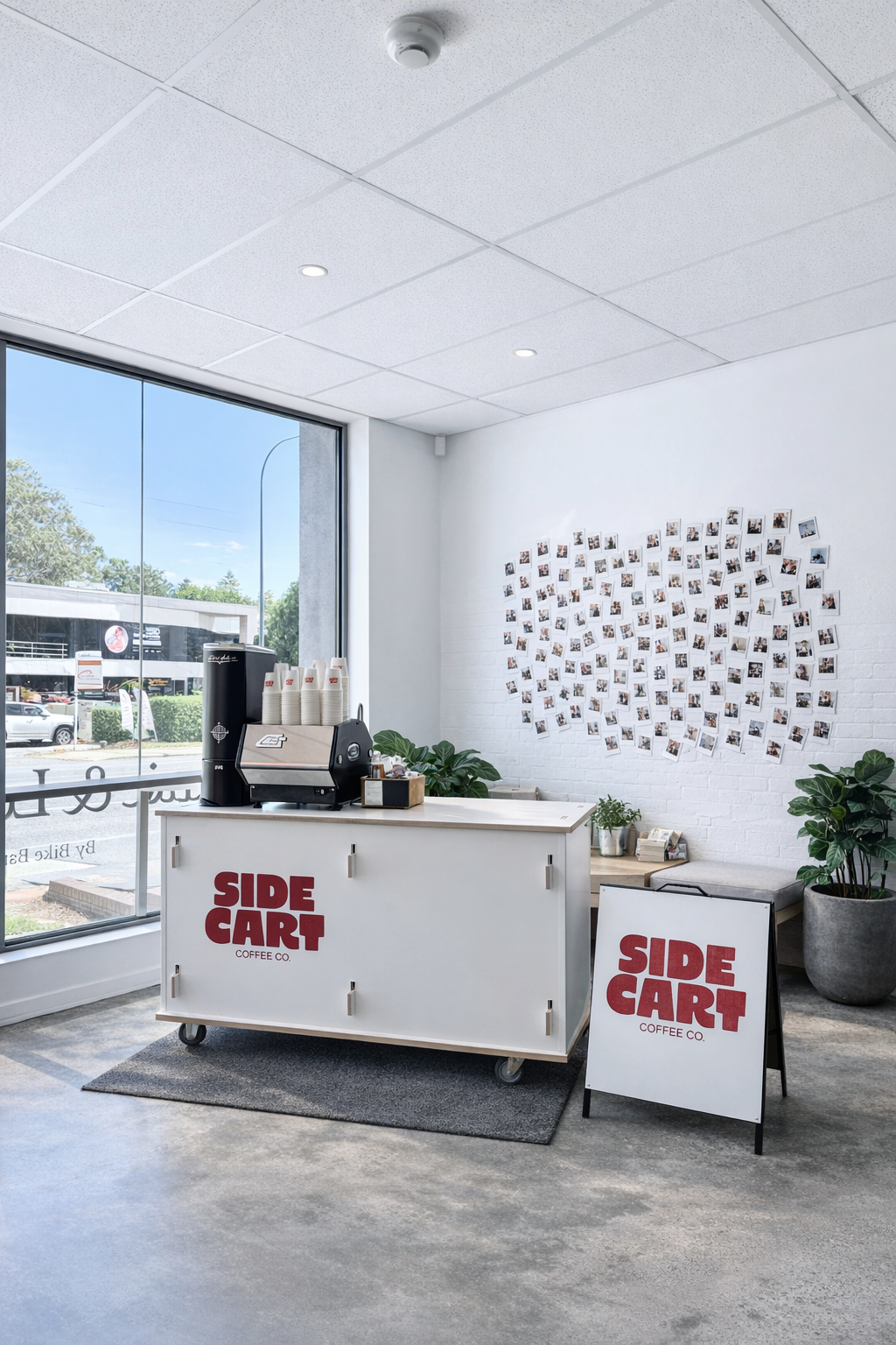 An extension of Side Piece, Daisies Cottesloe, and The Other Side, our coffee cart brings the same quality coffee, friendly service and good vibes you know from our cafés to your event. From corporate mornings and brand launches to weddings and private celebrations, Side Cart is designed to slot in seamlessly and look good doing it. We can also customise the cart with your branding, making it the perfect fit for launches, activations and on-site events.